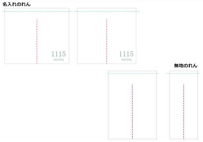 右下にグレーのロゴが入ったデザインと無地デザインを各2枚ずつ、計4枚ののれん制作を行いました。