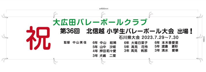 企業の販促などにも活用される横断幕ですが、今回のように地元のクラブチームや学校の大会進出を祝う幕としてのご注文も多くいただいております。