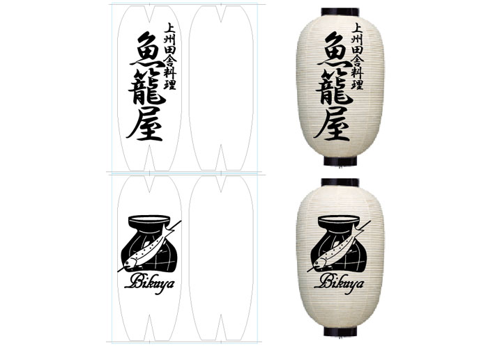 | 名入れ | 2面 正面:魚籠屋 スミ文字 背面:ロゴ スミ文字 |