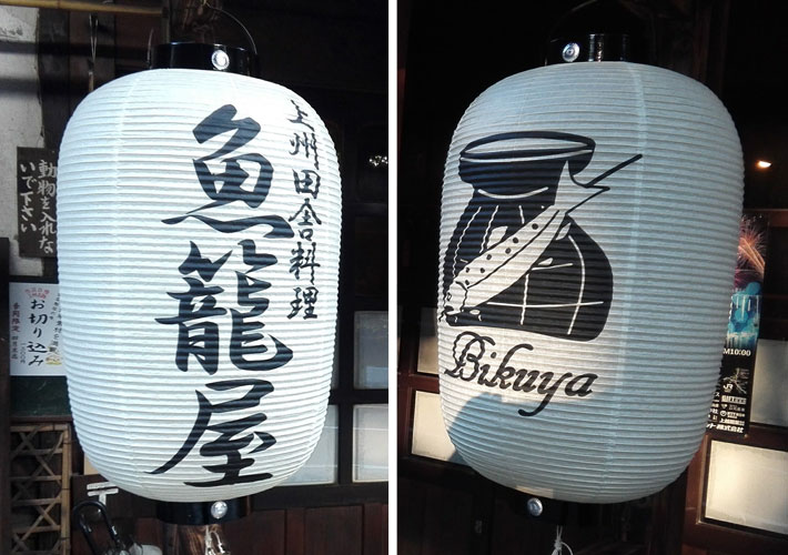 2つの提灯を左右に飾って頂き、店舗名とロゴが目立っています。