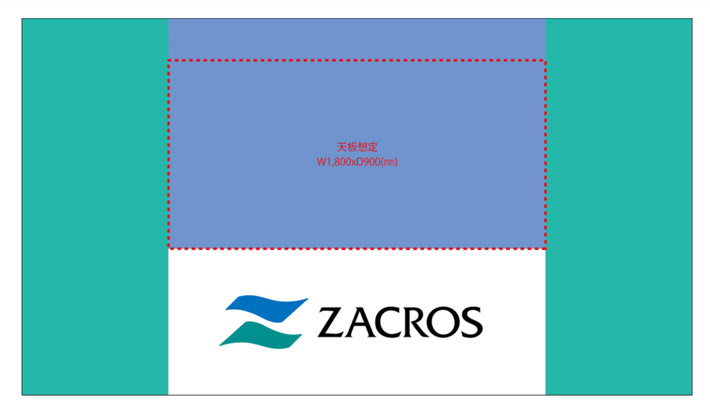 さらに定番サイズよりも少し縦幅が長いw3,200×h1,800(mm)にて作成することで、テーブルの奥行が600mmでも900mmでも併用でき、より幅広いイベント会場に対応することが可能となっております。
