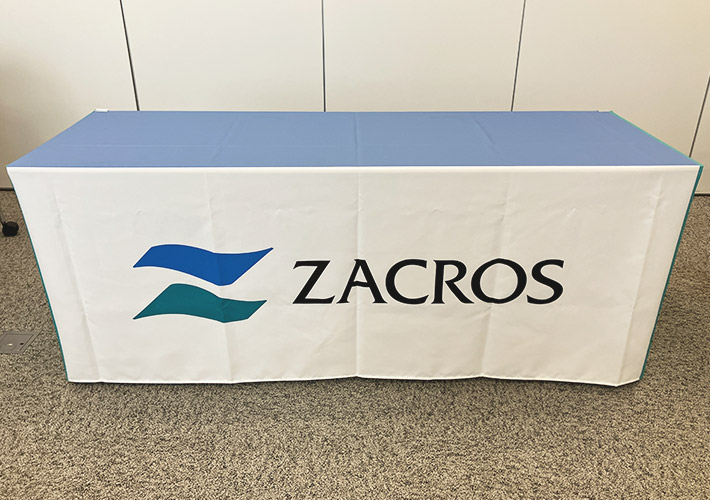 社内イベントや展示会・説明会などにご活用頂いても非常に目立ち、好感度も高いオリジナルテーブルクロスに仕上がったのではないかと思います!