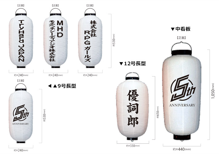 | 本体 | 12号長型ビニール提灯(白・黒枠) |