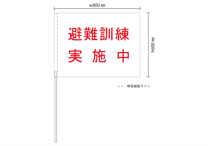 手旗としては大きめとなりますw800×h600(mm)サイズ、テトロンポンジ生地を使用し、避難訓練の案内・誘導用のオリジナル手旗を作成しました。