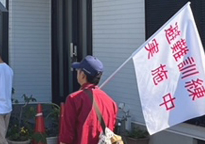 【事例883】市民協議会様の避難訓練用手旗をテトロンポンジ生地で製作いたしました