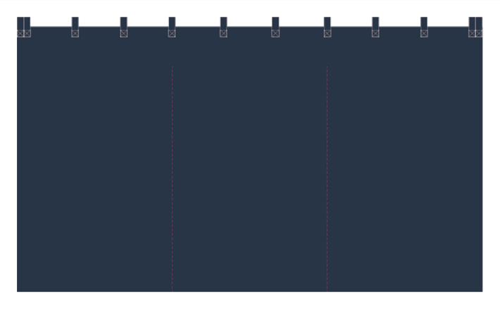 | 仕立て | 3巾 本仕立て 上部共チチ60(mm)出し(仕上がりh:1,260(mm) 防炎タグ縫付 |