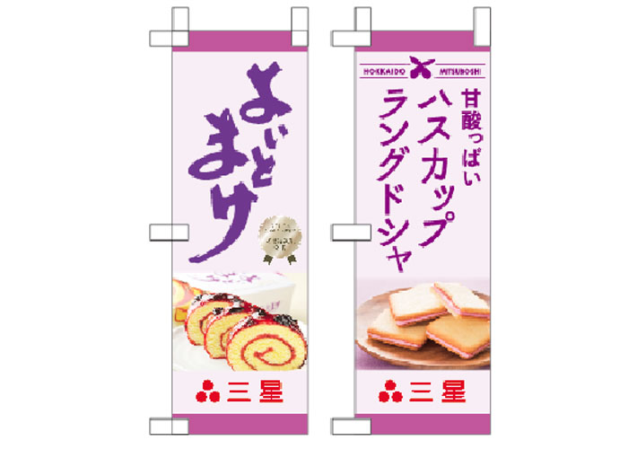 お菓子販売のPR用ミニのぼり旗を製作させて頂きましたので、ご紹介致します。