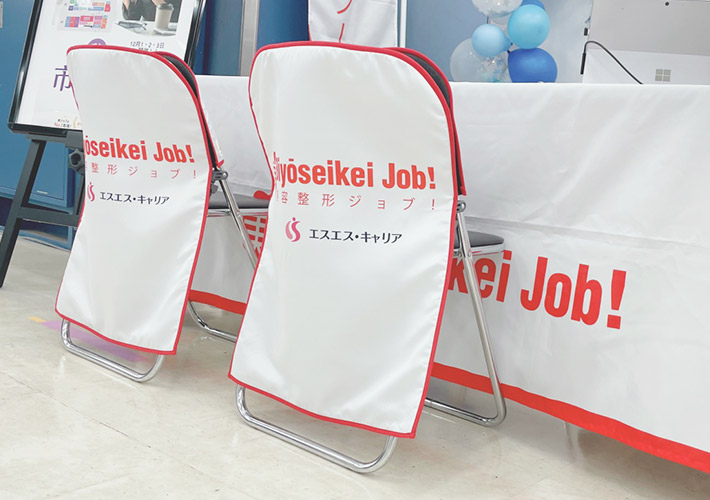 【事例898】美容医療系人材紹介サービス会社様の説明会用装飾としてテーブルクロスと椅子カバーを製作いたしました