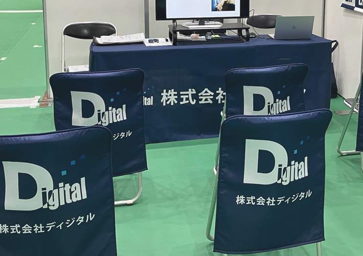 【事例915】IT関連企業様の説明会用テーブルクロス、椅子カバー、タペストリーを製作いたしました