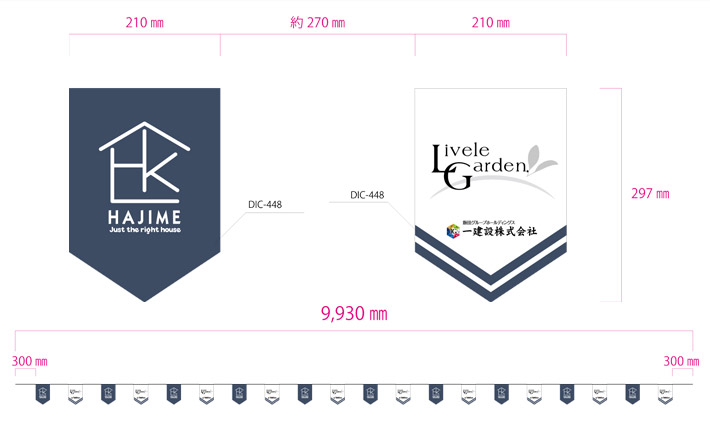 建築会社様のオリジナル連続旗を製作させて頂きましたので、ご紹介いたします。