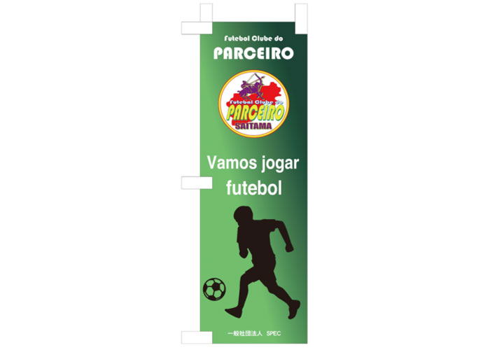 のぼり制作の定番人気生地となる薄手のテトロンポンジに、グラデーションやロゴ部分の赤色など細部まで色鮮やかに印刷されています。