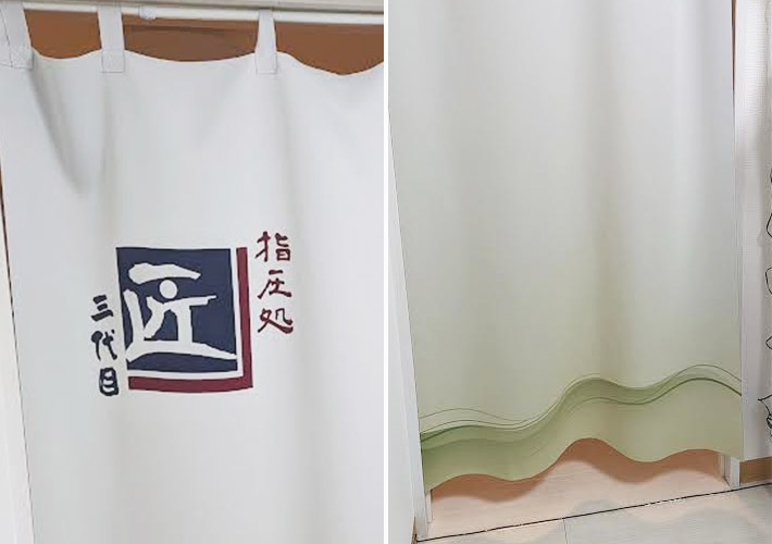 指圧サロン様のオリジナル店舗のれんを製作させて頂きましたので、ご紹介いたします。
