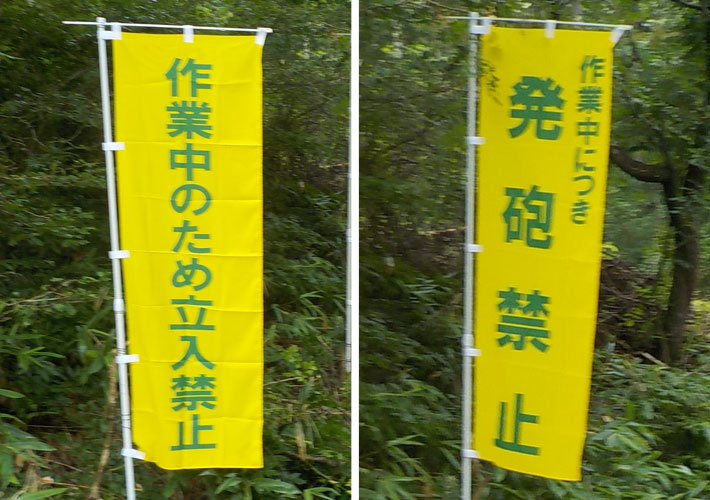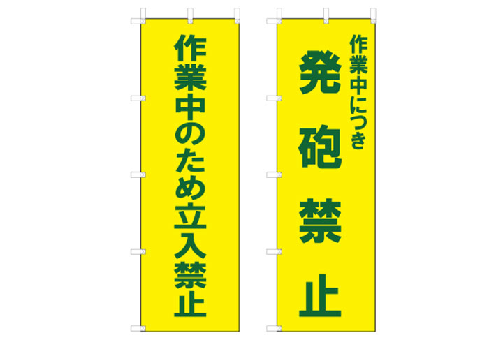 PR用のぼりだけではなく、このような安全標識、注意警告などを目的としたのぼり旗制作も承っております。