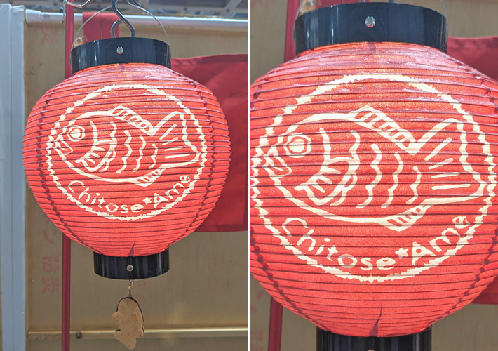 丸いフォルムにたい焼きのイラストを使った店舗ロゴがぴったりな、かわいくて味のある提灯に仕上がっています。ビニールではなく和紙素材を使用することでより温かみを感じる風合いに仕上がるので、手書き風のデザインとも相性抜群です!