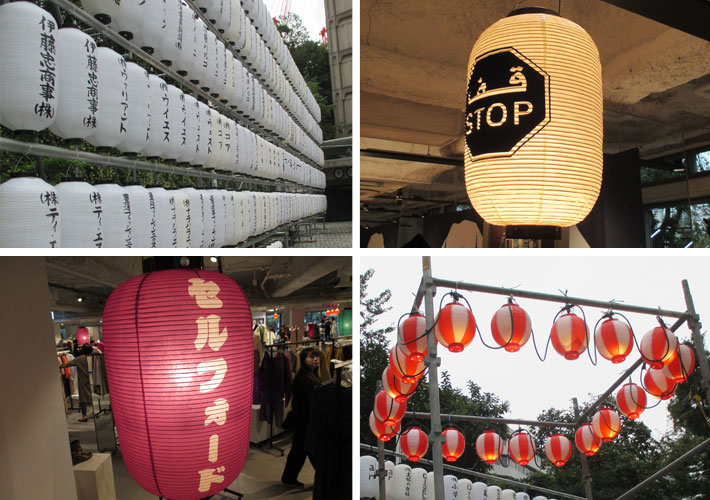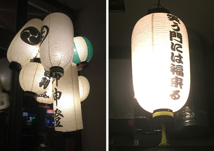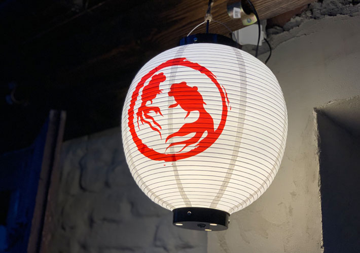 複数のデザイン・形状の提灯を組み合わせた和紙提灯を名入れ制作し、店内装飾としてご活用頂いています。