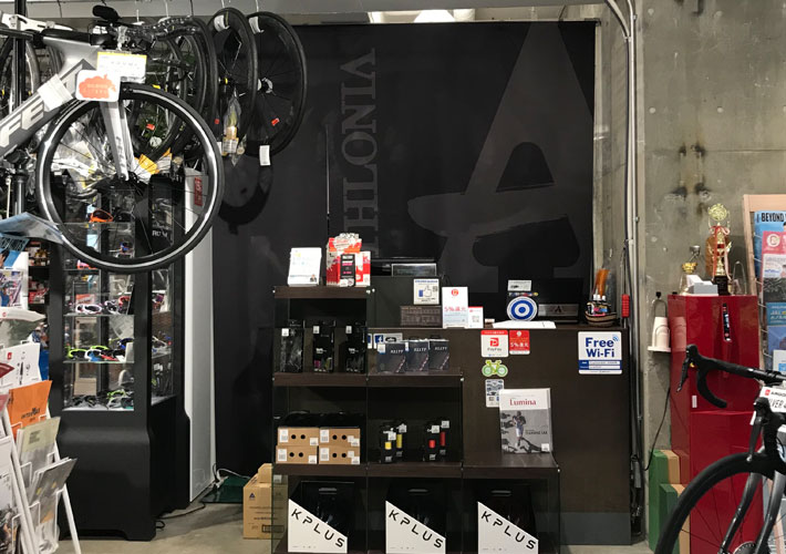釣り用品店様の陳列テーブル用テーブルクロスを制作しました。多色を使った店舗ロゴが黒色によく映えて、訴求力も抜群です。