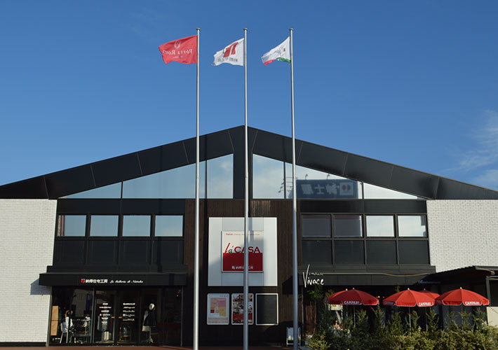 ダイレクト印刷により3種類の社旗の名入れ製作を行いました。デザイン違いの旗を掲揚することで訴求力もUPし、店舗も華やかな印象になりますね!