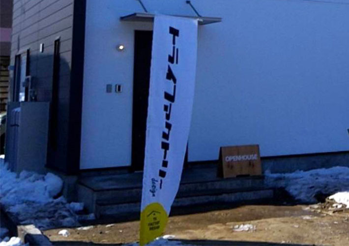 - 【事例403】住宅建築業様の内覧会用オリジナルRのぼりを製作いたしました2022/03/08