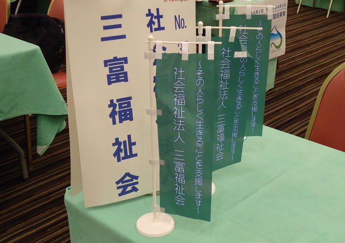 - 【事例475】社会福祉法人様のイベントブース装飾用テーブルクロス、のぼり旗を製作いたしました2022/03/08