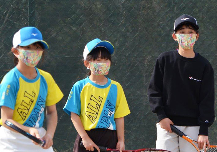 メッシュ生地を使用した通気性のいいマスクにスポーティーなデザインを名入れ印刷いたしました。紐部分を調整することでお子様でも着用が可能です!