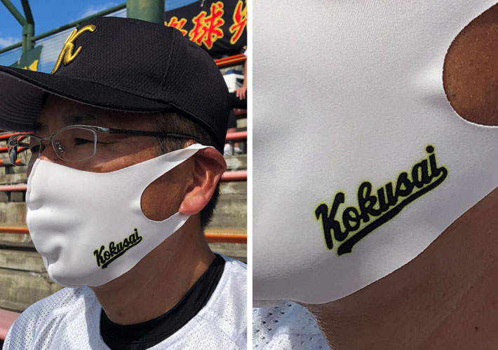シンプルながらしっかりロゴが目立つチームマスクを制作いたしました。本体は高品質な国内一流生地を使用し、吸水速乾性に優れた冷感マスクとなっております。