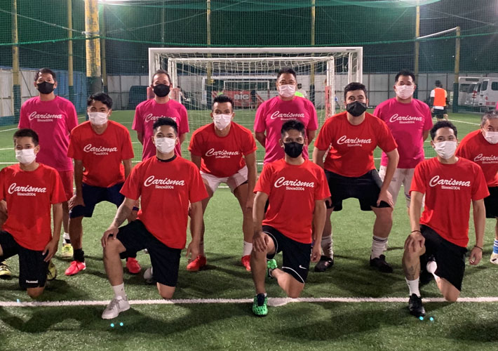 左胸、左袖、背面の3ヵ所にロゴ入れを行い、どこから見ても映える華やかなチームTシャツとポロシャツを制作しました。どちらもスポーツに最適なドライ生地の商品です。