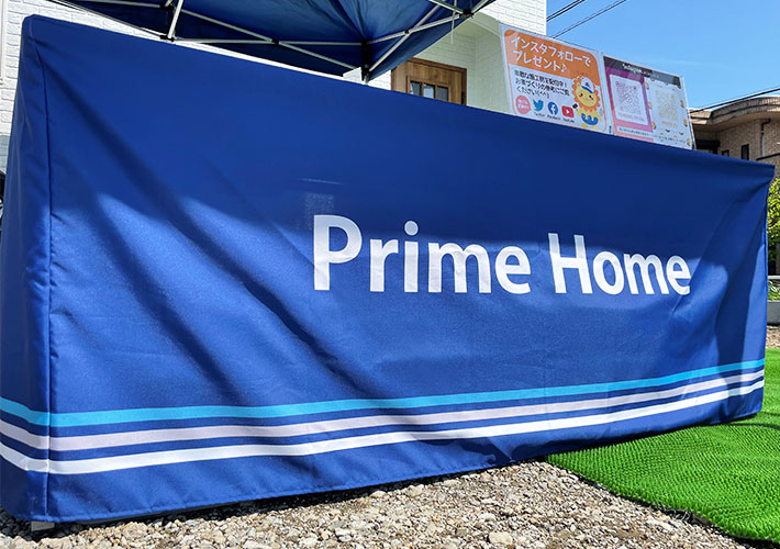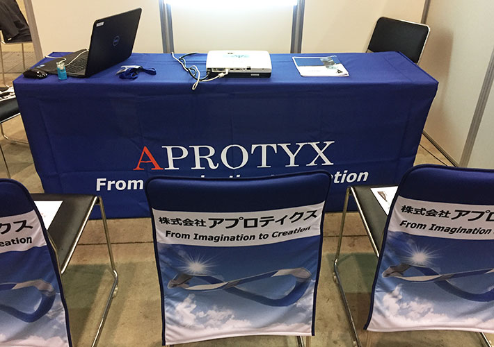 メーカーロゴ入りのテーブルクロスとマルチクロス、イメージ写真入りのロールアップバナースタンドをまとめてご注文頂きました。訴求効果を発揮しつつ、高級感のある印象のブース製作に役立っています!