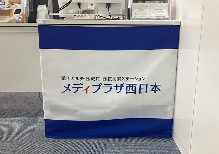 【事例298】OA機器販売会社のイベントブース装飾用テーブルクロス、バナースタンド、システムパネルを製作いたしました2022/03/08