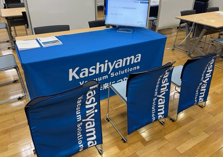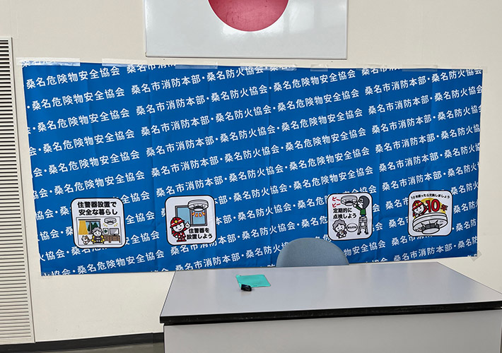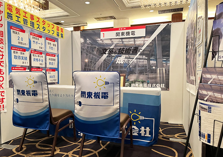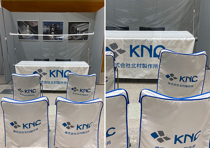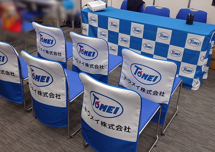【事例799】電気設備工事会社様の説明会用テーブルクロス、椅子カバー、タペストリーを製作いたしました2024/01/12
