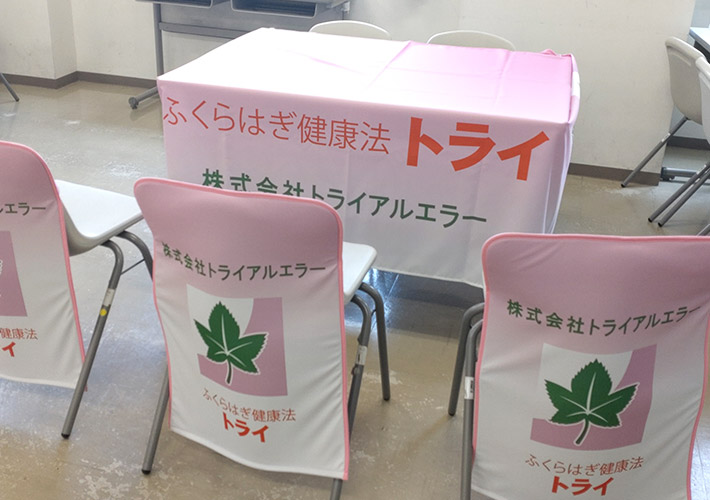 【事例893】食料品メーカー様の説明会用テーブルクロス、椅子カバー、タペストリーを製作いたしました2024/06/10