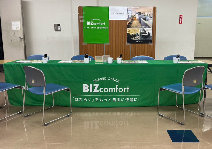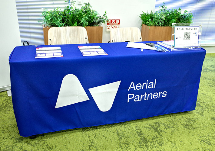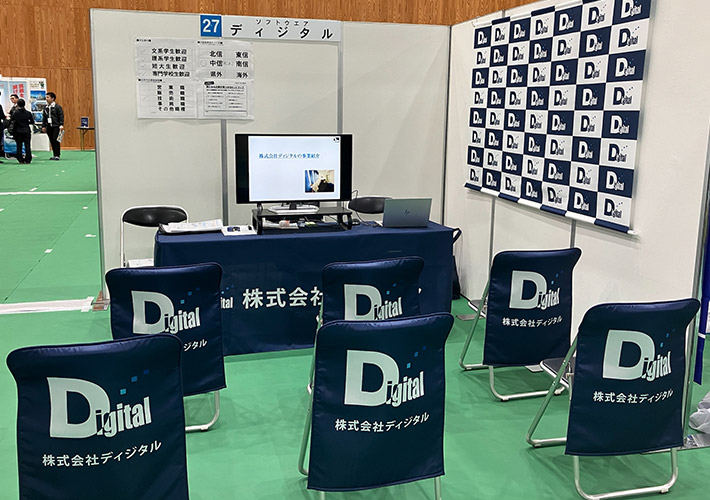 【事例808】ソフトウェア企業様の合同説明会用テーブルクロス、椅子カバー、タペストリー、バナースタンドを製作いたしました2024/02/05