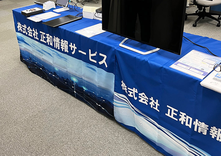 【事例901】電気機器メーカー様の展示会装飾用テーブルクロスとタペストリーを製作いたしました2024/06/28