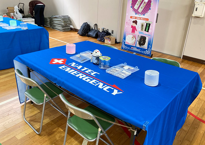 【事例849】防災用品メーカー様のイベント用テーブルクロスをテトロントロマット生地で製作いたしました2024/02/19