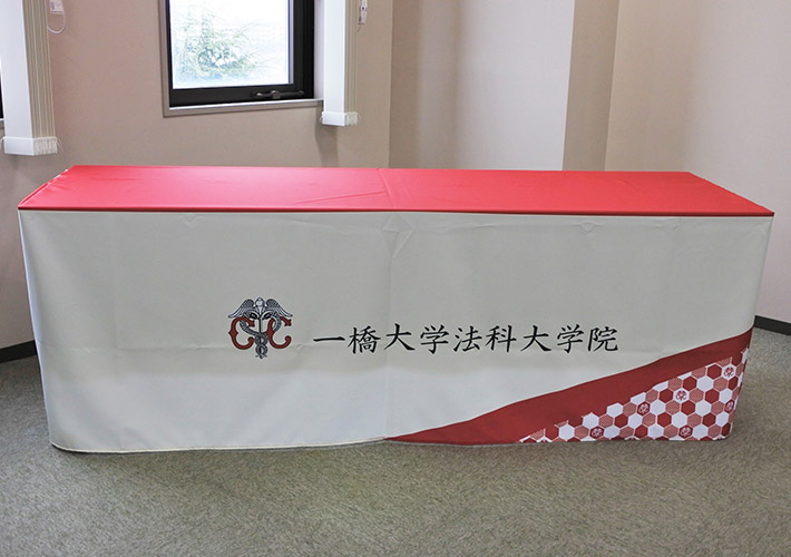【事例820】専門職大学院様の説明会用テーブルクロスをテトロントロマットで製作いたしました2024/02/15