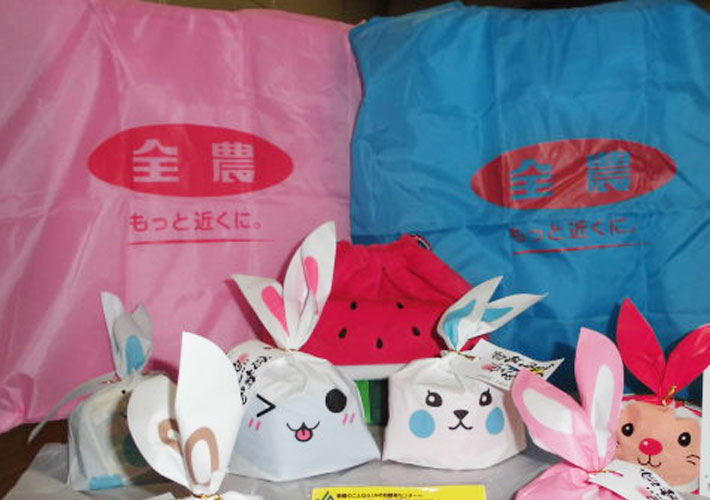 農業組合様のオリジナルバッグを制作させていただきました。ポケット部分に折り畳みが可能なエコバッグですので、お買い物に大活躍します。