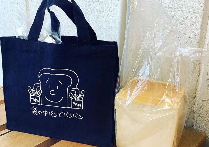 かわいいイラスト入りのオリジナルエコバッグを作成しました!しっかり底マチがあるボックス形状のバッグなので、厚みのある食パンなども収納しやすい商品です。
