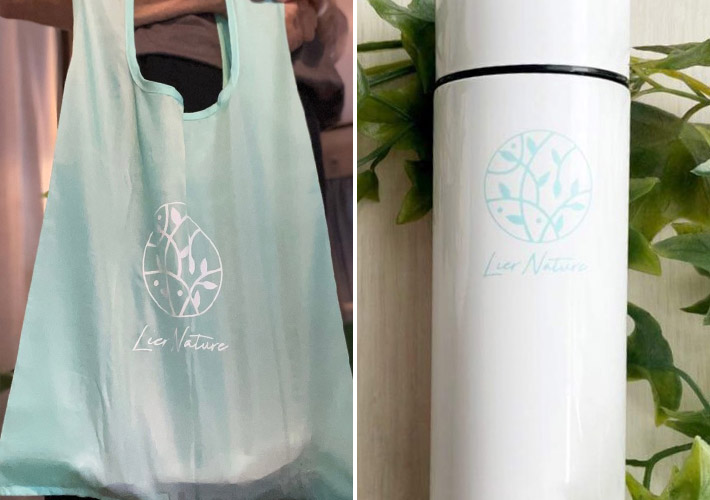 無漂白コットンを使用したサスティナブルなトートバッグに、柔らかな薄茶色のシルク1色印刷にてロゴプリントを行いました。レジ袋サイズで、普段使いに重宝する特注グッズです!
