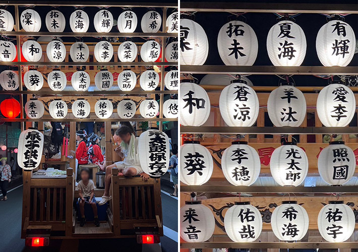 山車を賑やかに照らすオリジナルビニール提灯を計25個ご発注いただきました!名入れ制作は、カッティングシートにてお名前をムラなく丁寧に再現しております。