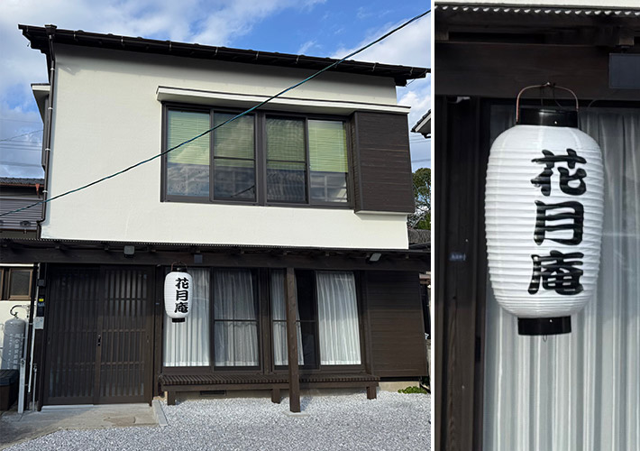 高さ約105cmほどの中看板サイズの提灯を二つご注文頂き、職人の手書きでロゴ入れを行いました。古民宿様の看板としてアピール効果もありつつ、趣のある店外装飾となっています!