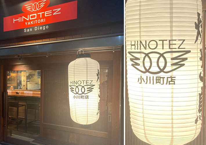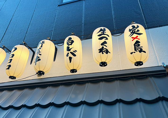高さ約80cmの大きなビニール提灯の正面・背面に、スミ文字で職人の手書き名入れを施しました。活気や親しみやすさを演出する赤提灯は、焼鳥店様と相性抜群です!