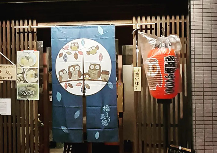 フルカラーのふくろうイラストと黒文字をフィルム加工にて名入れ制作いたしました。定番の店舗名入りデザインだけではなく、かわいいイラストが入ることでアイキャッチ効果抜群の仕上がりです!