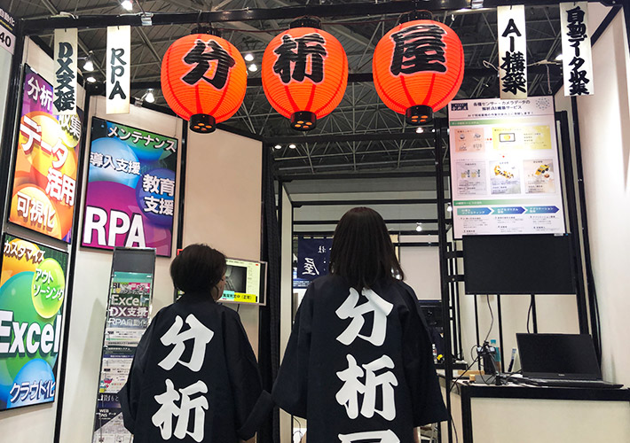 赤色の丸形ビニール提灯に一文字ずつ名入れを行い、企業名が力強く目立つブース装飾を作成しました。他のブースとは違った和の雰囲気を演出し、来場者の印象に残りやすくなったのではないかと思います!
