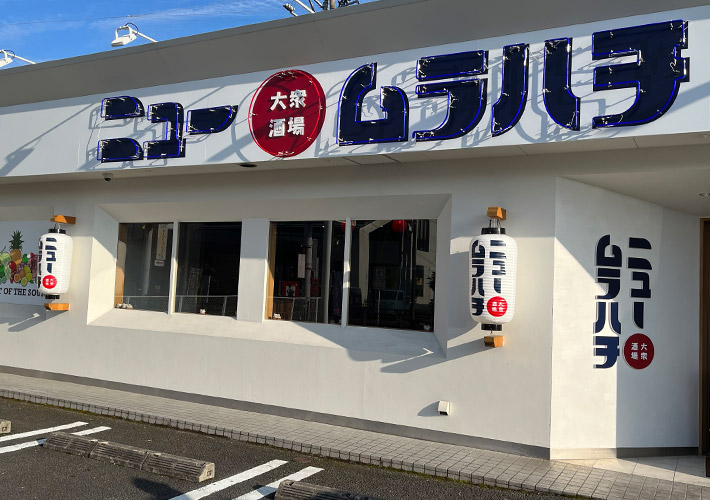 大きな黒文字が力強く迫力ある仕上がりです!正面と右面の2面に名入れを施すことで、どの方向からでも名入れが目立つオリジナル看板となっております。