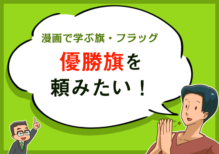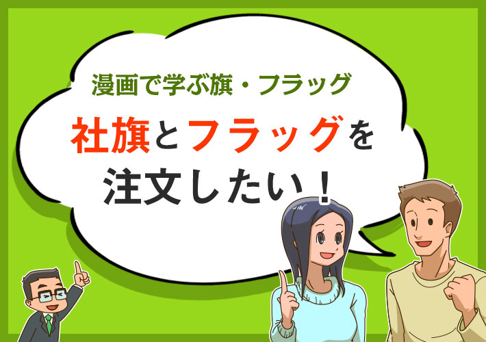 旗やフラッグの注文の仕方が不安な方に、漫画で分かりやすくご紹介!「漫画で学ぶシリーズ」旗・フラッグ編。