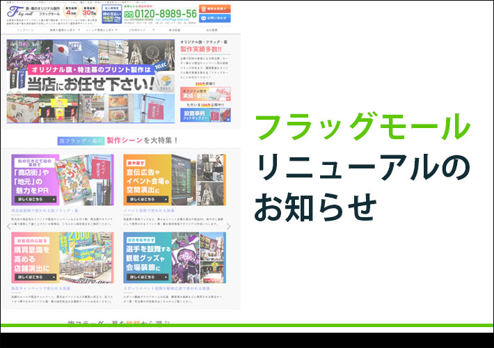 当店運営サイト「フラッグモール」のリニューアルについてのお知らせです。