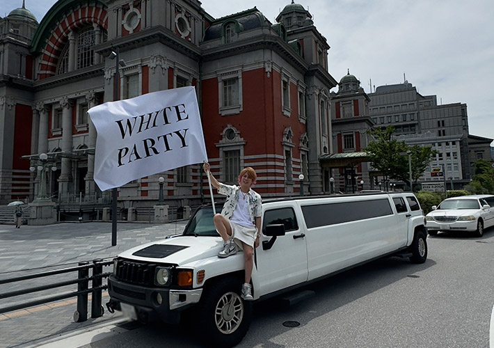 裏抜けしない遮光スエード生地を使用し、表裏どちらから見ても白地に黒の名入れが映える手旗の製作事例をご紹介します。白色がドレスコードのパーティーでご活用頂きました!