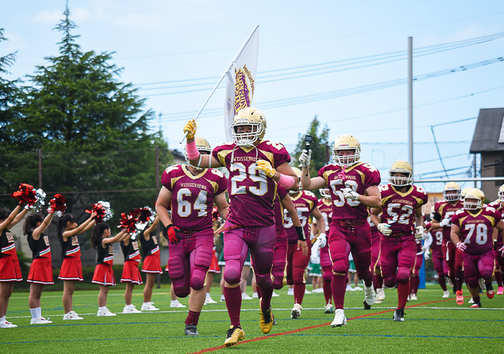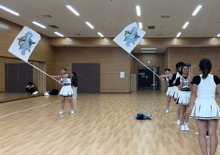 チアリーディングのパフォーマンスに使用するロゴ入りのチーム旗の製作実績になります。特注旗が軽やかに舞う姿は、迫力満点です!