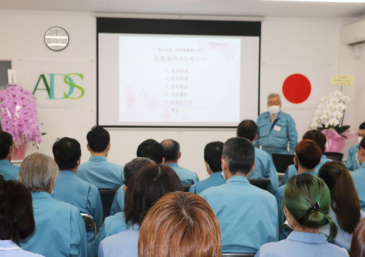 - 【事例435】製作所様の式典壁面装飾用のオリジナル社旗、国旗を製作いたしました2022/03/08