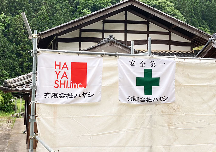 - 【事例437】建築現場用のオリジナル社旗、安全旗を製作いたしました2022/03/08