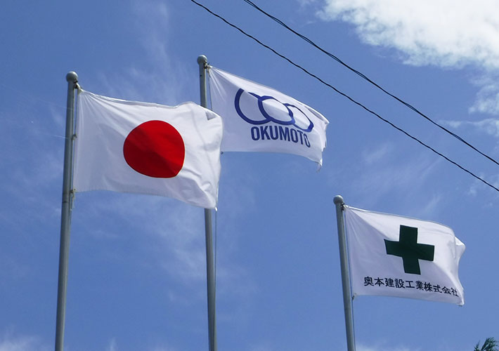 - 【事例462】建設業様の屋外掲揚用の社旗、安全旗、国旗を製作いたしました2022/03/08